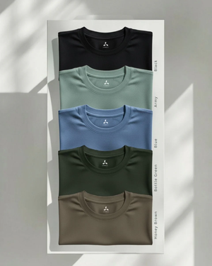Men's Feather Touch Round Neck T-Shirt Combo - Pack of 5 (Black, Army, Blue, Bottle Green & Honey Brown Color)